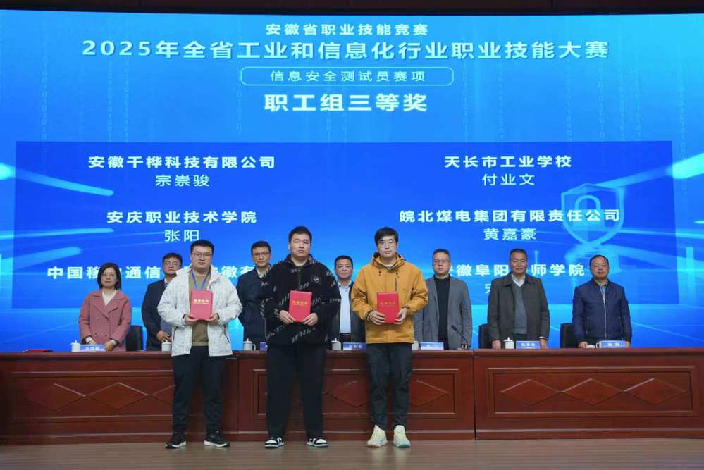 10 月 25 日,2025 年“安徽省工业和信息化行业职业技能大赛信息安全测试员”赛项在安徽工业经济职业技术学院正式开赛,点点官网教师张阳凭借扎实的专业知识、精湛的实操能力和出色的应变能力,荣获职工组三等奖,展现了点点官网教师优秀的职业素养与良好的精神风貌。