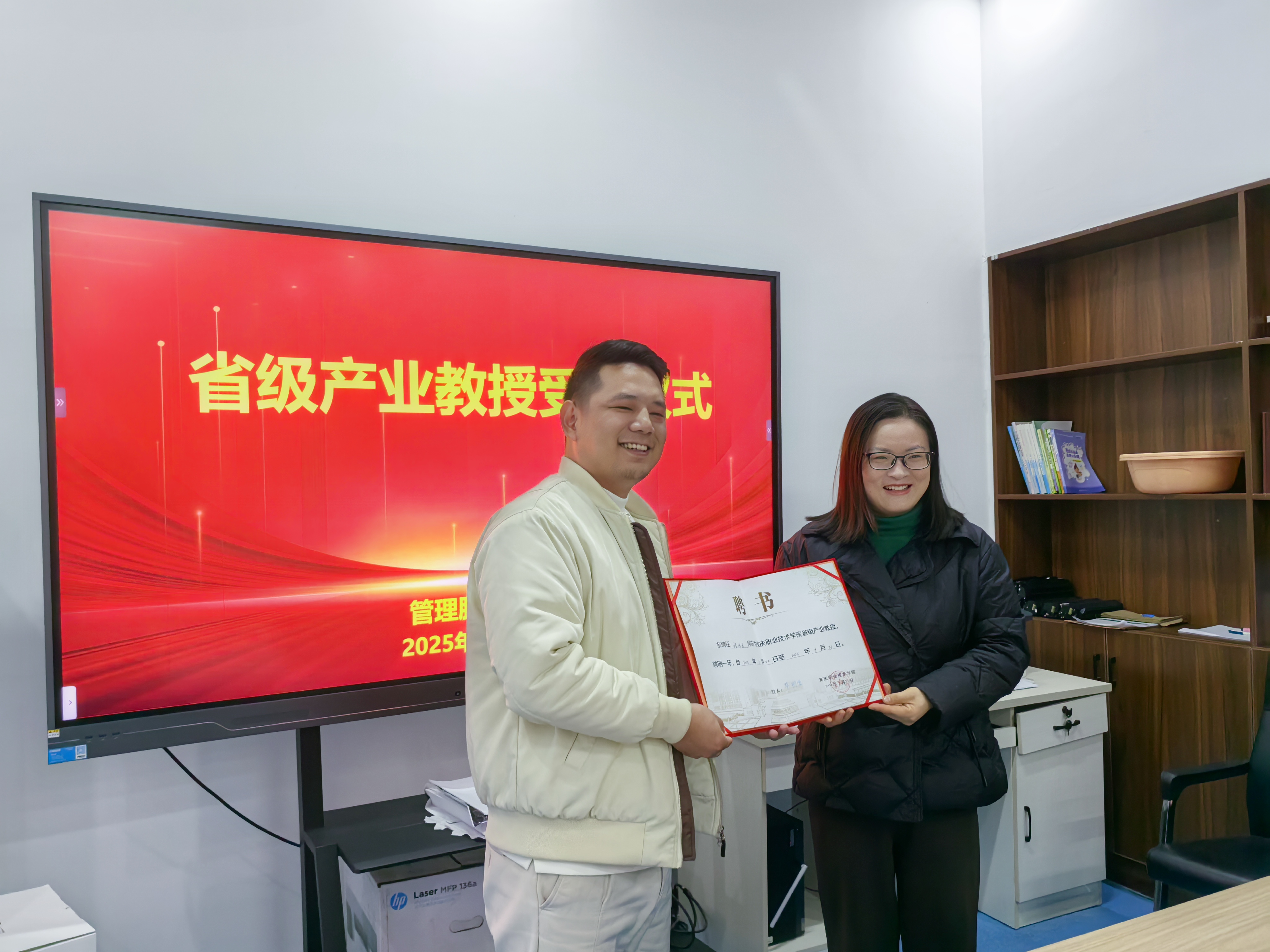 12月19日,管理服务学院在幼儿三期会议室举行省级产业教授聘任仪式,聘请安徽云驴通信息技术有限公司总经理程伟勇为该院产业教授。该院院长陈颖为程伟勇颁发聘书,该院教学工作负责人主持仪式,相关工作人员,旅游管理和酒店管理与数字化运营教学团队教师代表、安徽云驴通信息技术有限公司代表参加了仪式。