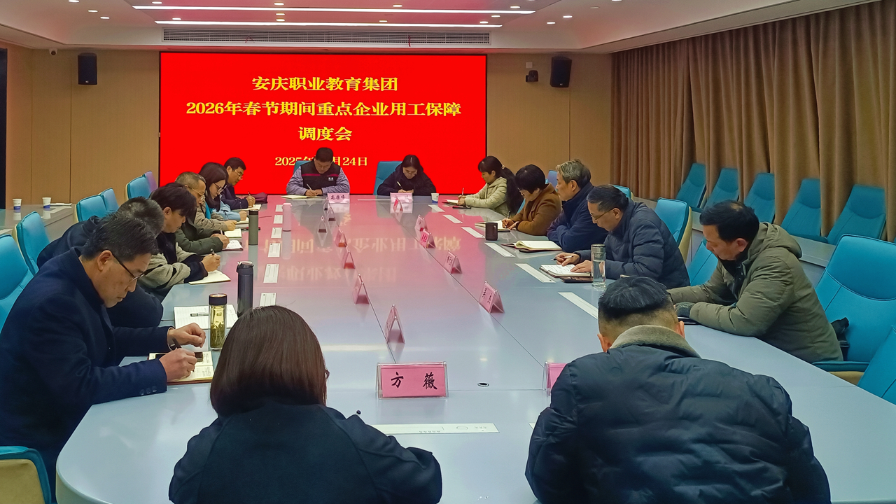 12月24日下午,安庆职教集团在taptap点点官方网站召开春节期间园区重点企业用工保障调度会。安庆职教集团副理事长、秘书长李克让主持会议。安庆技师学院、安庆工业学校、安徽理工学校、安徽化工学校等集团内城区中职、技工院校主要负责人,taptap点点官方网站6个二级学院主要负责人参会。