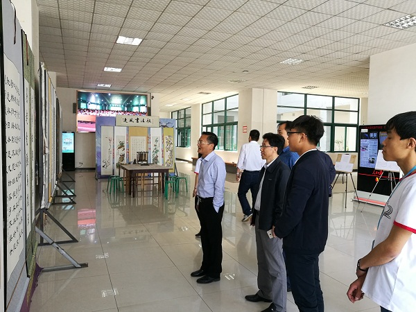 为推进校园文化建设,努力营造文明高雅、奋发向上的校园文化氛围,弘扬传统文化,截至5月14日,安庆市第五届高校书画联展在我院图文信息中心一楼大厅圆满落幕。联展期间,院党委书记王进、副院长毕明生、学生处(团委)负责同志前往现场观看。