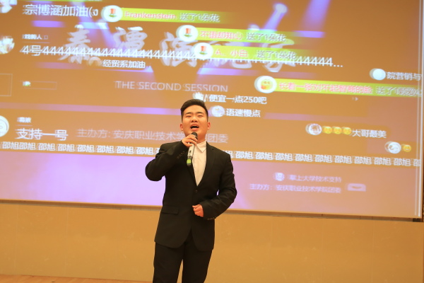 比赛分为一分钟自我介绍、五分钟演讲、一分钟拉票三个环节。自我介绍环节,有介绍自己家乡引入,有介绍个人兴趣爱好等多样形式;演讲环节,展现了选手们的语言表达能力和形象魅力,有人陈述对大学生责任担当的理解,有人抒发对母亲的挚爱与感激,还有人表达对人生的美好憧憬等,选手们都把自身的优秀综合素质及临场应变能力发挥的淋漓尽致;最后一个环节,选手们或施展才艺,或幽默逗趣,或以诚动人,只为赢得听众微信点赞一票的支持。