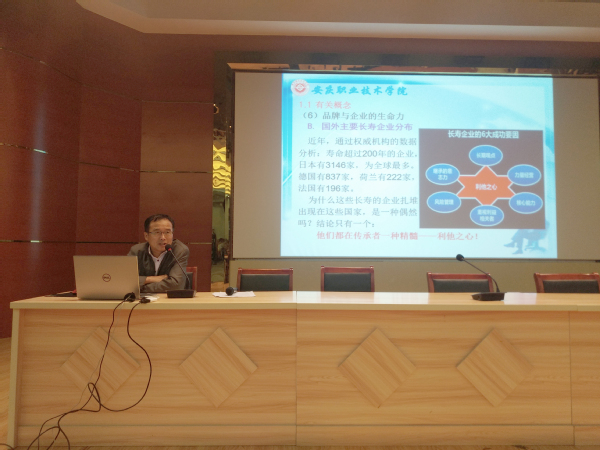 讲座从制造类产品在品牌建设中的不足、市场监管者如何助推品牌建设、市场参与者如何提升品牌意识、关于品牌建设与申请等几个方面展开。江建刚指出,在现代企业竞争中,品牌建设是企业提高市场占有率,进行项目推广的主要策略;同时用大量的文字与图片向同学们介绍长寿企业的精髓、注册商标专用权的好处、品牌的软硬性保护等;强调加强品牌建设,可以增加企业的凝聚力、吸引力和辐射力,有利于企业美誉度与知名度的提高,从而促进地方经济的可持续发展。