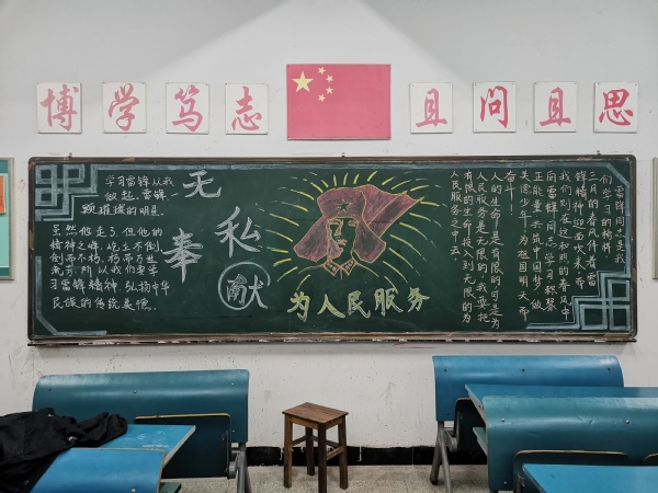在主题板报活动中,各班积极参与,精心设计,充分利用校园文化黑板报这块宣传阵地,展现雷锋的形象,歌颂雷锋“全心全意为人民服务”的高尚品质,展示了同学们对雷锋精神的感悟和理解。