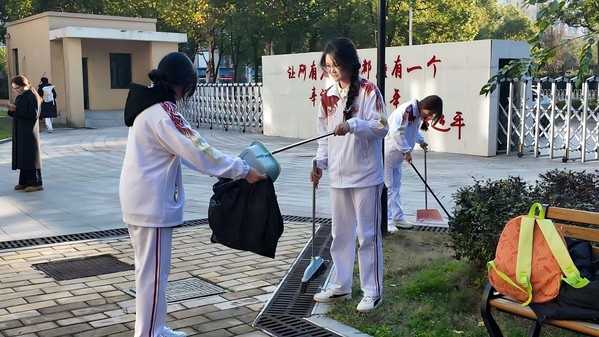 演出结束之后,同学们分工协作,投入到公益打扫中,拿起扫帚、垃圾袋和水桶,将医养中心的公共区域收拾得整洁如新,用实际行动为老人们营造了一个洁净温馨的环境。