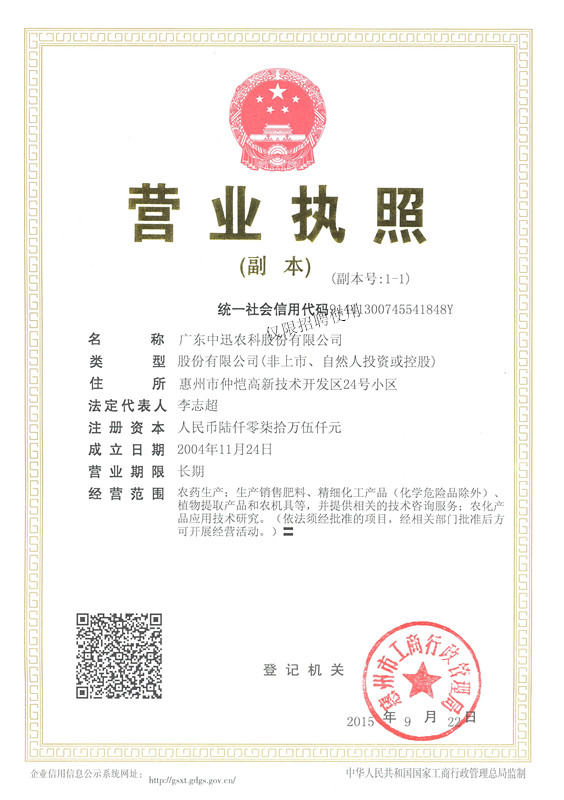 广东中迅农科股份有限公司成立于2002年,是一家集农药、药肥及相关农资产品的研发、生产、销售和服务于一体的国家级高新技术企业,旗下拥有“中迅”、“科利隆”、“海特”等多个全国知名品牌。公司拥有员工一千多人,年销售额逾7亿,连续多年在全国制剂行业销售30强中名列前茅。公司先后在广东、四川、江西、湖北、湖南等地建有生产基地,自主研发、生产四百多个产品。公司拥有县级以上销售服务合作商5000多个,并有直接服务于基层的人员600多人。
