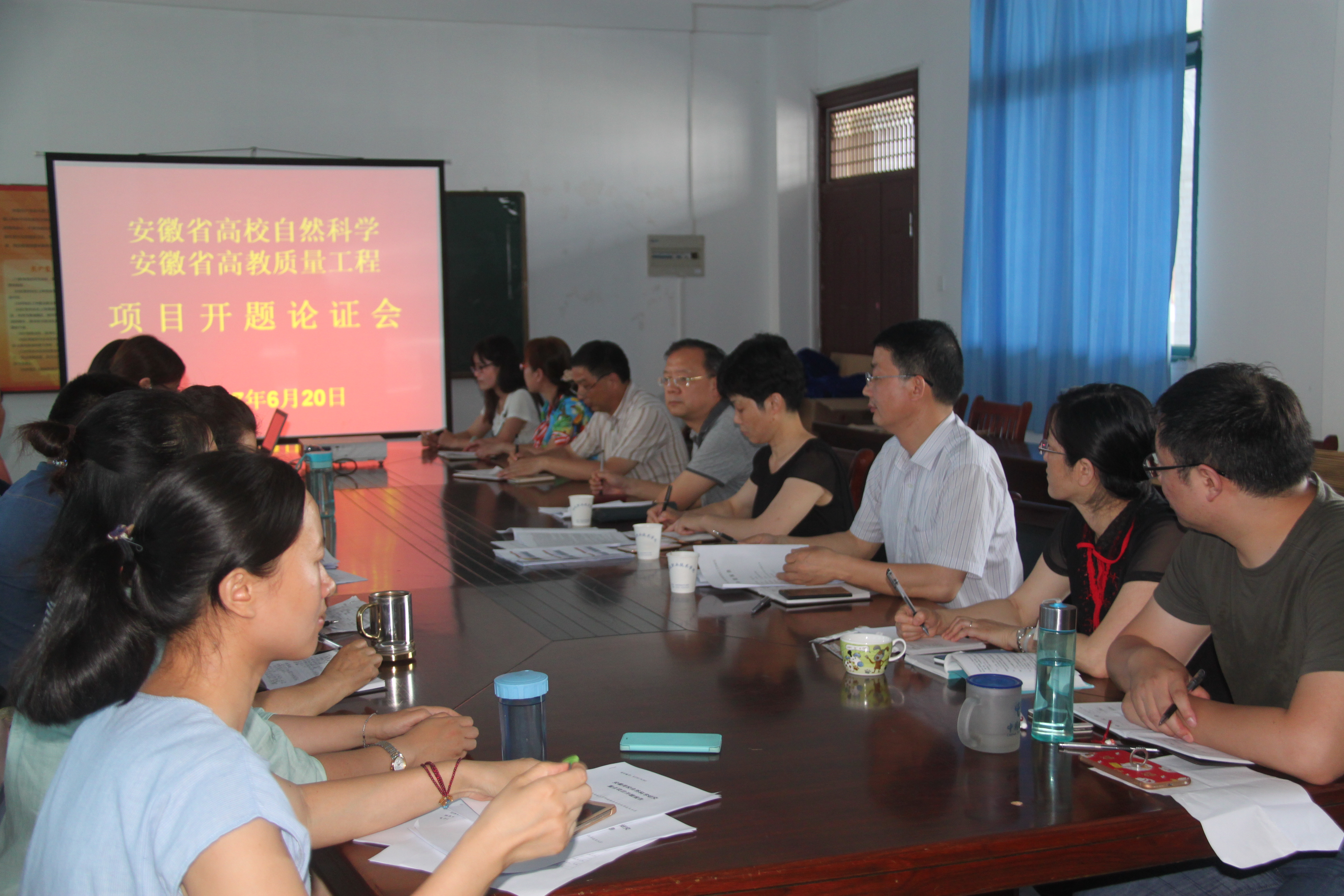 6月20下午,园林园艺系在二号教学楼园林系会议室召开安徽省高校自然科学研究重点项目以及安徽省质量工程重点项目开题论证会。谭维奇副院长教务处吴何珍处长、张林副处长、安徽锦华蓝莓有限公司李贤亮总经理出席了会议,会议由园林系主任毕璋友教授主持。各项目组成员参加会议
