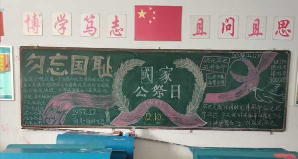 铭记历史、追思同胞,是一种历史责任,也是一种前行力量,各班团支部举办了“国家公祭日”主题黑板报。
