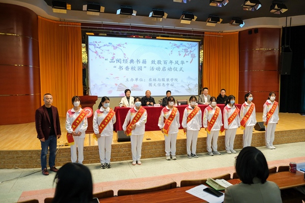 4月13日下午,“品阅经典书籍 致敬百年风华”书香校园系列读书活动仪式在图文信息中心大报告厅隆重举行。校长毕明生,校党委委员李五一出席活动,图文信息中心和农林与服装学院主要负责同志、学院专兼职辅导员及21级学生代表参加,活动由农林与服装学院学生工作负责人主持。