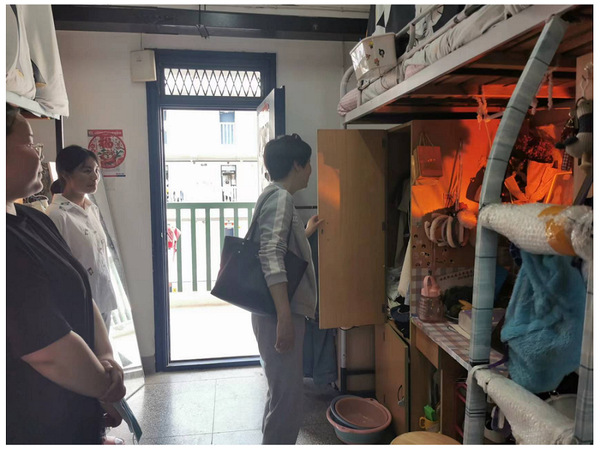 活动中,全体党员进入结对联系的寝室,就寝室卫生、寝室文化建设、是否存在安全隐患等问题进行了检查,并向同学们传达学校的疫情防控政策,表示“疫情阻挡出行的脚步,不阻挡学习进步的脚步”,鼓励同学们安心学习,快乐生活。