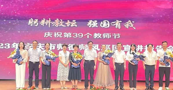9月7日下午,2023年安庆市师德师风巡回宣讲报告会在安庆四中圆梦校区举行,市领导和全市教师代表共400余人参加报告会。点点官网陈月萍教授作为特邀宣讲人进行了事迹报告,校党委委员高润霞带领十余名教师代表现场聆听了报告,各二级单位组织师生通过现场直播进行了听学。